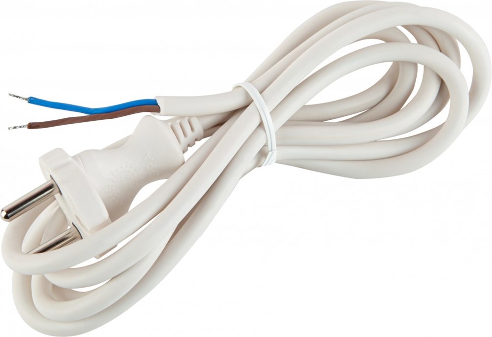 Шнур для бра UX-ШВВП-2x0,75-1,8m-W без заземления, провод ШВВП с сечением 2х0,75, длина 1,8 м, цвет - белый. Провод шнура питания состоит из скрученных жил с надежной ПВХ оболочкой. На конце шнура имеется штепсельная вилка. Изделие предназначено для комплектации или ремонта электрических бытовых приборов.