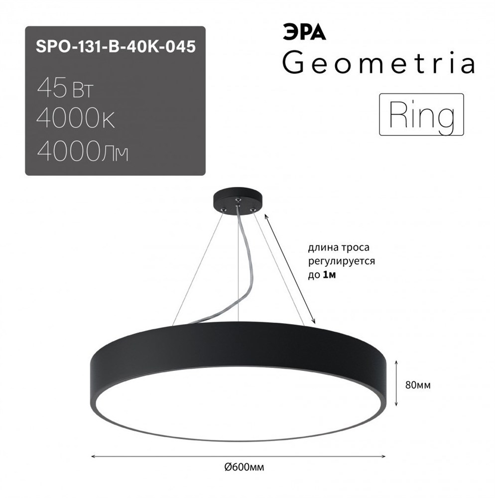 ЭРА Светильник светодиодный Geometria ЭРА Ring SPO-131-B-40K-045 45Вт 4000К 4000Лм IP40 600*600*80 черный подвесной ЛТ Б0058899