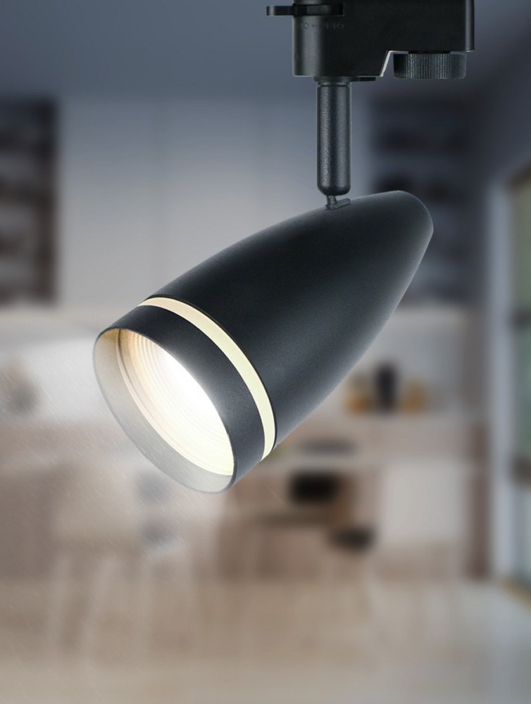 Однофазный трековый светильник под лампу с цоколем GU10. Светильник выполнен из алюминия и пластика. На передней части плафона, выполненного в виде конуса, расположено декоративное акриловое кольцо, которое наполняется светом и придает светильнику превосходный внешний вид.