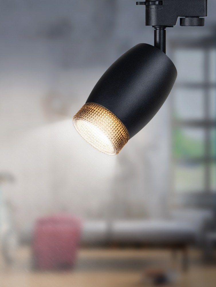 Однофазный трековый светильник под лампу с цоколем GU10. Светильник выполнен из алюминия и пластика. На передней части плафона находится пластиковое кольцо, стилизированное под хрусталь. Во включенном виде данное кольцо наполняется светом и создает превосходный визуальный эффект, а также оно выполняет функцию ограничителя угла рассеивания светового потока, снижая эффект ослепления светом.
