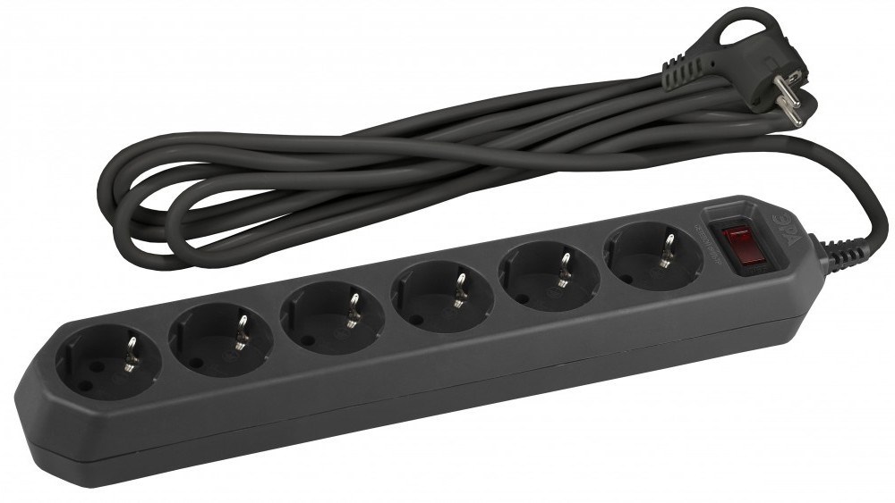ЭРА USF-6es-5m-B-BOX Сетевой фильтр базовая защита, с/з, с выключателем, 6гн, 5м, ПВС, 10А, черный Б0037265