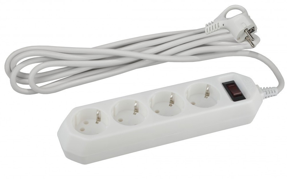 ЭРА USF-M-4es-1.5m-W Белый Сетевой фильтр начал. защита, с/з, с выкл, 4гн, 1,5м, ПВС, 10А Б0019741