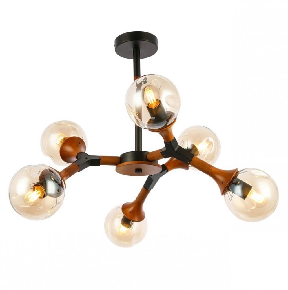 Evoluce SLE109402-06 светильник потолочный чёрный, тёмное дерево/Прозрачный, Янтарный E27 6*60W SLE109402-06