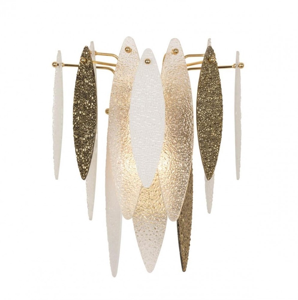 Каркас золотого цвета, стеклянные полупрозрачные, белые и золотые пластины миндалевидной формы с эффектом мокрого стекла