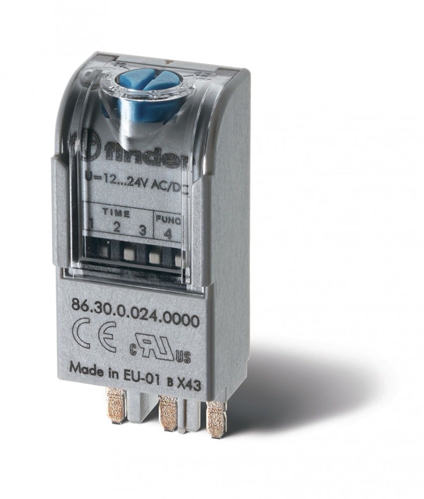 Finder Таймерный модуль 2-функциональный (AI,DI); для применения с реле, монтаж в розетку; питание 12...24В AC/DC; регулировка времени 0.05с...100ч; с 863000240000