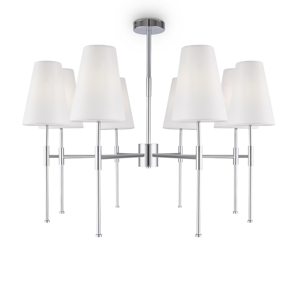 Каждая деталь в серии Tida имеет значение. Так, акцентный вытянутый силуэт вслед за собой «вытягивает» и всё освещаемое пространство. Арматура и удлиненные рожки изготовлены из металла и представлены в двух цветовых решениях: выигрышная комбинация черного и латуни, а также востребованный хром. Строгая симметрия элементов и геометрия в дизайне делают композицию визуально легкой и невесомой. Вытянутые абажуры выполнены из белой ткани. Серия включает люстры на 6 и 8 ламп, а также бра, что позволяет организовать комплексную подсветку спальни, гостиной или столовой. Эклектичный дизайн легко адаптируется в неоклассическом и модерновом интерьере.