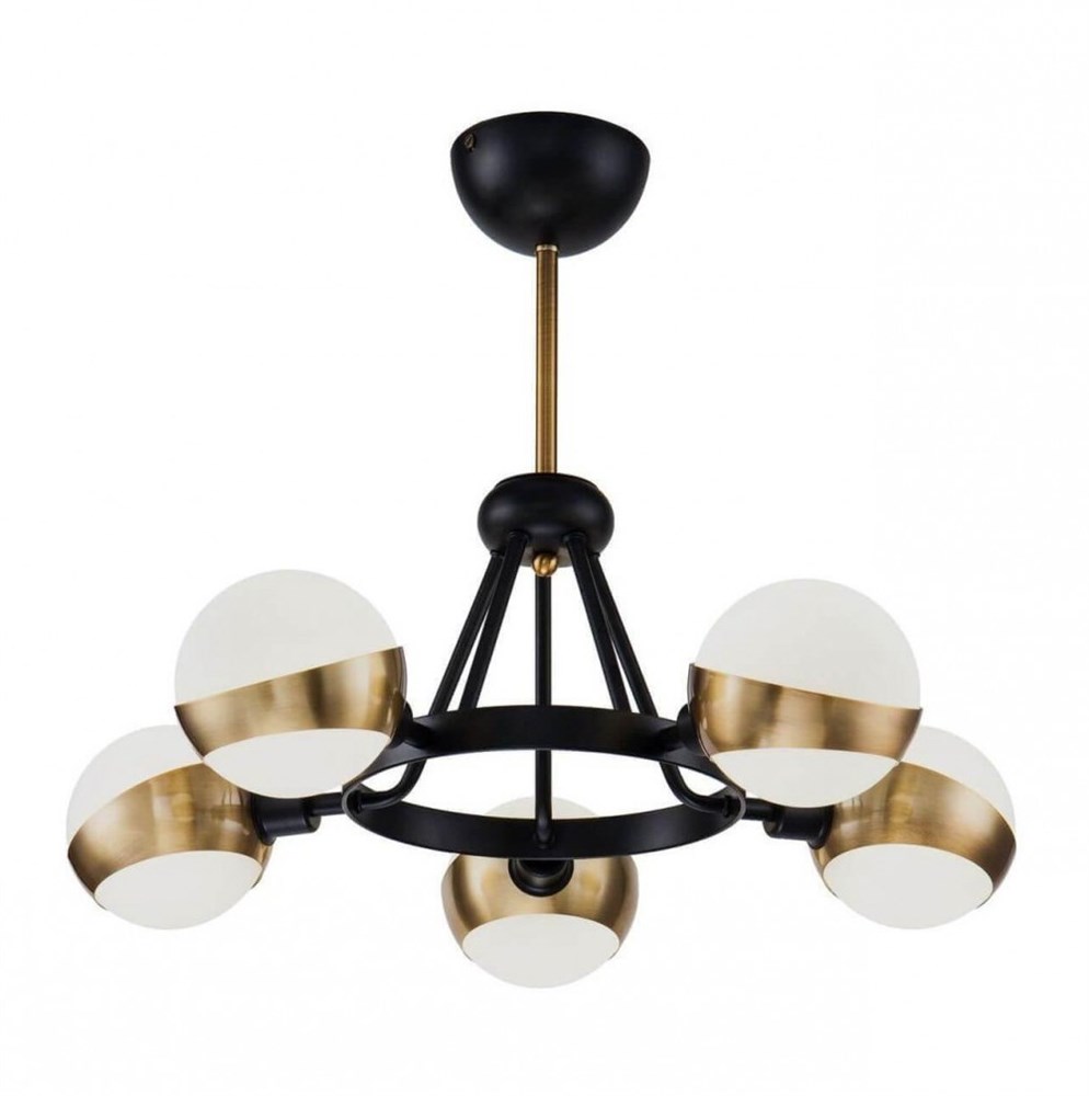 Серия светильников в современном стиле с футуристическими мотивами. Арматура из металла доступна в двух цветах: в черном и в цвете хром". Плафоны сделаны из белого стекла. Небольшая высота светильников позволяет использовать их в помещениях с любой высотой." Люстра FR5009PL-05B; Высота-390; Высота при подвесном креплении--; Диаметр-580; Ширина--; Глубина--; Цоколь-E14; Мощность-60W