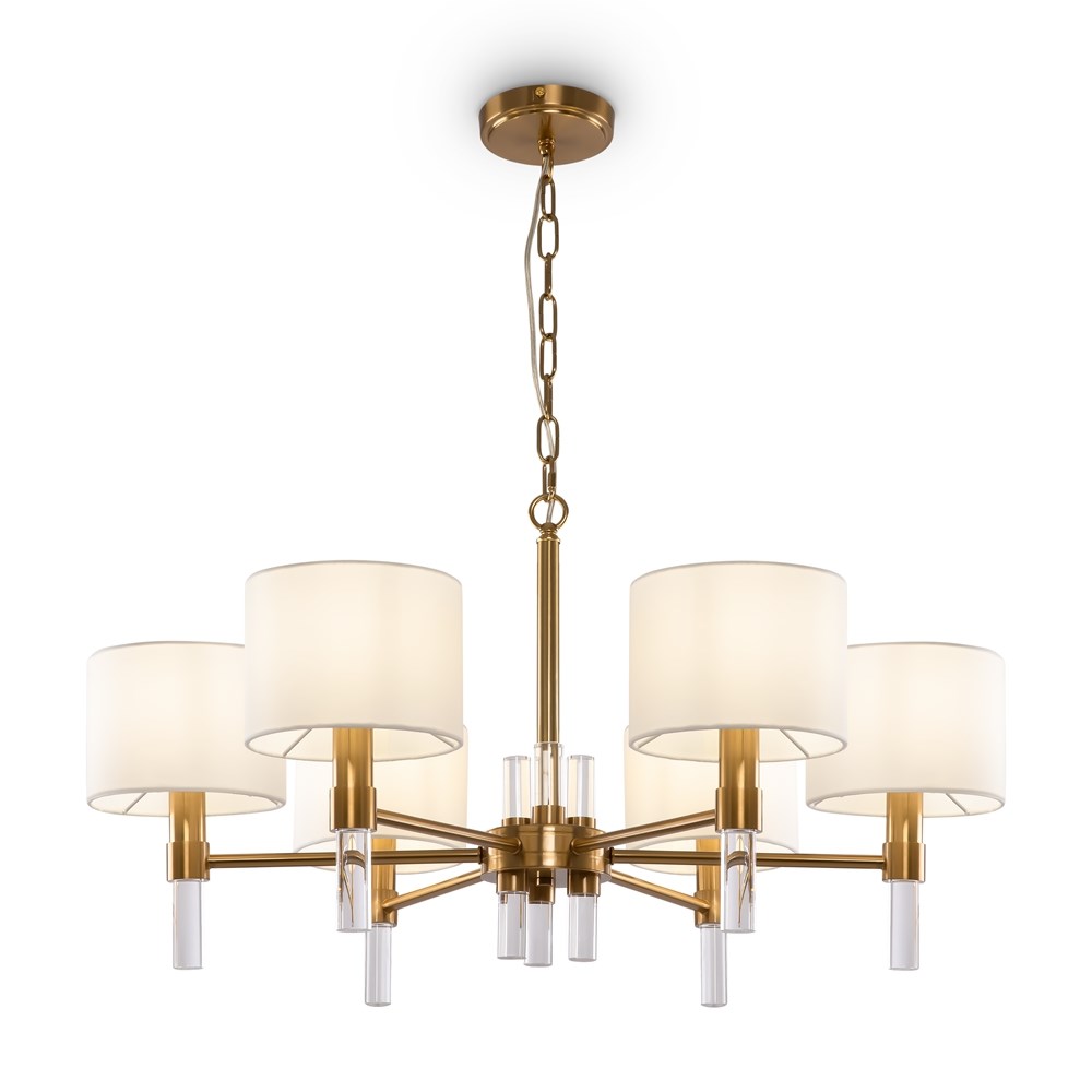 Серия Lino – это элегантная интерпретация современной классики. Металлическая арматура светильников окрашена в благородный оттенок латуни. Белоснежные тканевые абажуры мягко приглушают световой поток. Симметричность элементов создает легкий образ, а декор – прозрачные акриловые трубки – подчеркивает невесомость композиции. Комбинация фактур и материалов – модный тренд, добавляющий освещаемому пространству объема и глубины. Серия предназначена для комплексной подсветки интерьера, включает как общие, так и зональные источники света: подвесную люстру на 6 и 8 плафонов, одиночный подвес, настольную лампу, торшер и бра. Широкий выбор позволяет сформировать разнообразные световые сценарии в обстановках, оформленных в стиле неоклассика, модерн, ар-деко, эклектика.