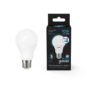 Gauss Лампа A60 10W 920lm 6500K Е27 шаг. диммирование LED 1/10/50 102502310-S