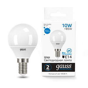Gauss Лампа Elementary Шар 10W 750lm 6500K Е14 LED 53130