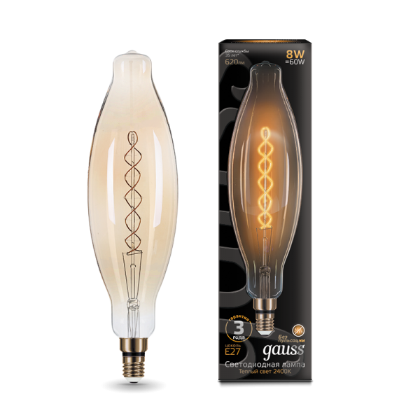 Gauss Лампа Filament BT120 8W 620lm 2400К Е27 golden flexible LED 156802008