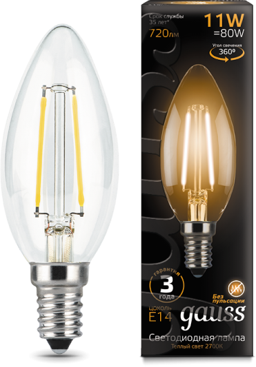 Светодиодные филаментные лампы GAUSS - это новейшие технологии в светотехнике. Лампы имеют привычный вид классических ламп накаливания, освещают пространство на 360о и дают больше света по сравнению с обычными светодиодными лампами за счет прозрачной колбы. Идеально подходят для хрустальных люстр и открытых светильников, а также для реализации дизайнерских решений, где важен вид классических ламп накаливания.