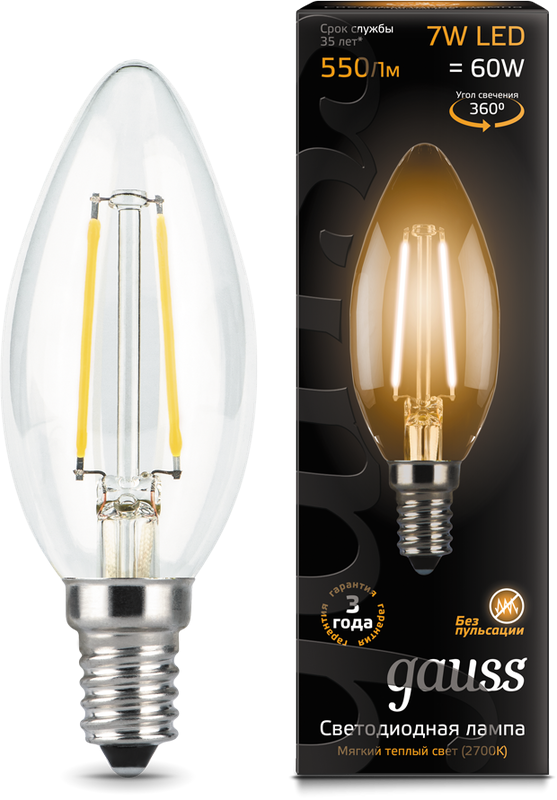 Светодиодные филаментные лампы GAUSS - это новейшие технологии в светотехнике. Лампы имеют привычный вид классических ламп накаливания, освещают пространство на 360о и дают больше света по сравнению с обычными светодиодными лампами за счет прозрачной колбы. Идеально подходят для хрустальных люстр и открытых светильников, а также для реализации дизайнерских решений, где важен вид классических ламп накаливания.