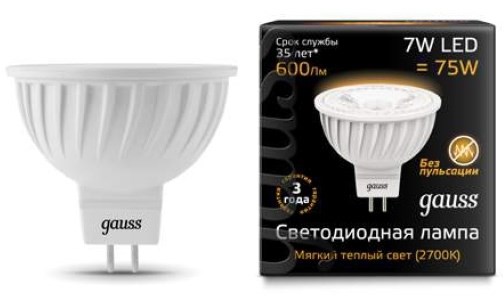 Gauss Лампа MR16 7W 600lm 3000K GU5.3 LED 101505107