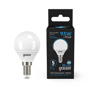 Gauss Лампа Шар 9.5W 950lm 6500K E14 LED 1/10/50 105101310