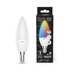 Gauss Лампа Свеча 6W E14 RGBW+димирование LED 103101406