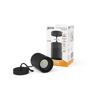 Gauss LED светильник накладной (подвесной) HD038 12W (черный/черный) 3000K 79*100мм 1/2 HD038