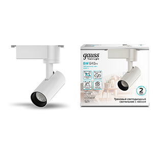 Gauss Светильник трековый цилиндр 8W 750lm 4000K 180-220V IP20 45*155мм белый линза 36? LED TR077