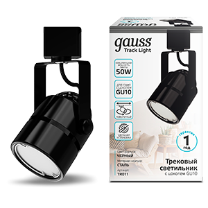 Gauss Светильник трековый цилиндр GU10 220V IP20 60*145мм черный однофазный TR011
