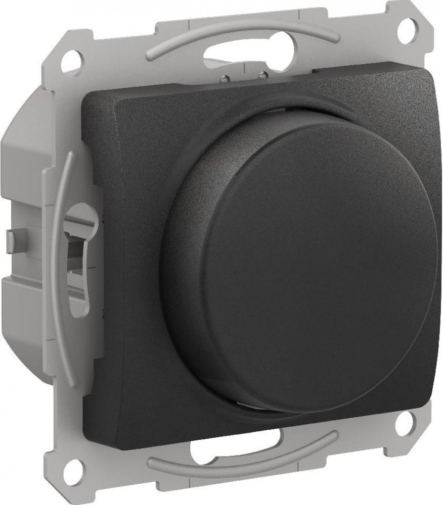 Механизм светорегулятора Systeme Electric (ранее Schneider Electric) серии Glossa (цвет антрацит) поворотно-нажимной для нагрузки мощностью до 400 Вт, подходит для LED ламп. - Светорегулятор позволяет установить в помещении комфортный уровень освещения. - При подключении второго переключателя диммер может использоваться как проходной переключатель. - Может использоваться как выключатель или переключатель. - Выполнен из материала, стойкого к УФ-излучению и появлению царапин.