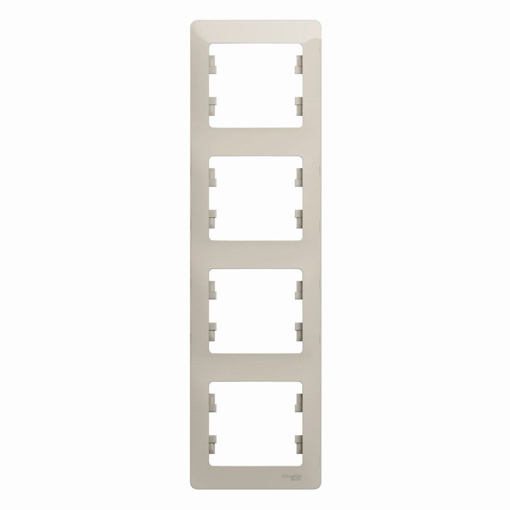 Рамка Systeme Electric (ранее Schneider Electric) серии Glossa (цвет молочный) четырёхместная. - Устанавливается в вертикальном положении. - Выполнена из материала PС+ASA, стойкого к УФ-излучению и появлению царапин. - Позволяет гармонично вписать электроустановочное изделие в интерьер помещения.