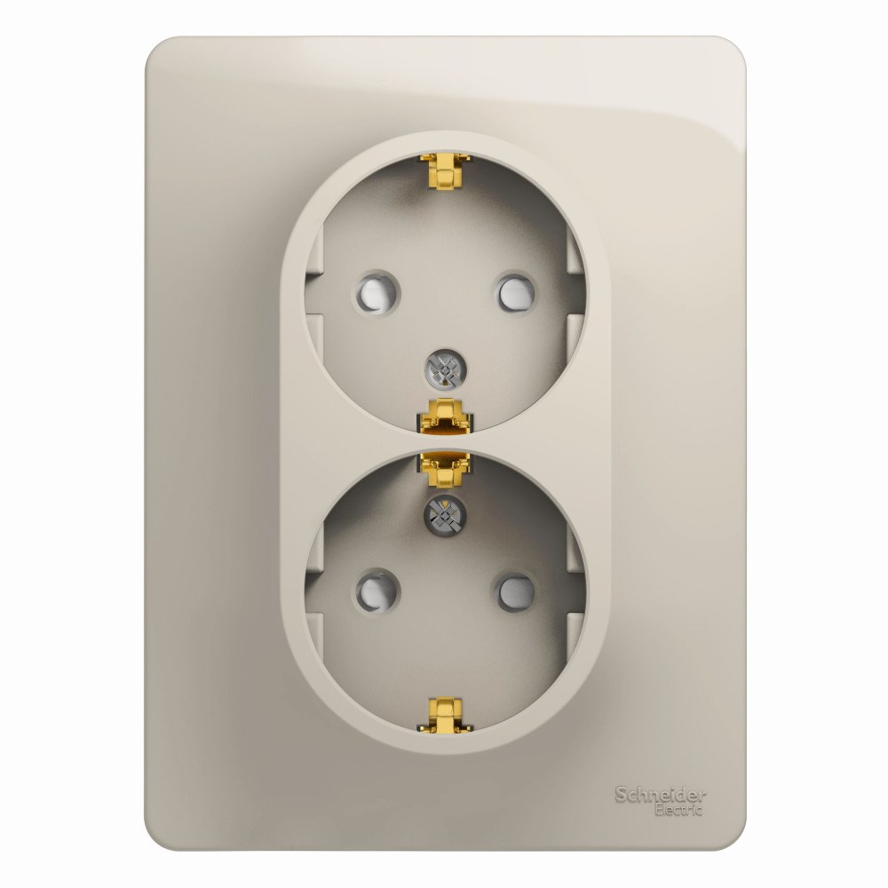 Розетка двойная Systeme Electric (ранее Schneider Electric) серии Glossa (в сборе, цвет молочный) с заземлением и шторками подходит для сетей 250 В, на ток 16 А. - Заземляющий контакт обеспечивает дополнительную защиту от удара электрическим током. При наличии заземления электрический потенциал уходит в землю, защищая человека. - Выполнен из материала PС+ASA, стойкого к УФ-излучению и появлению царапин. - Двойная розетка позволяет подключить два устройства в одном месте.