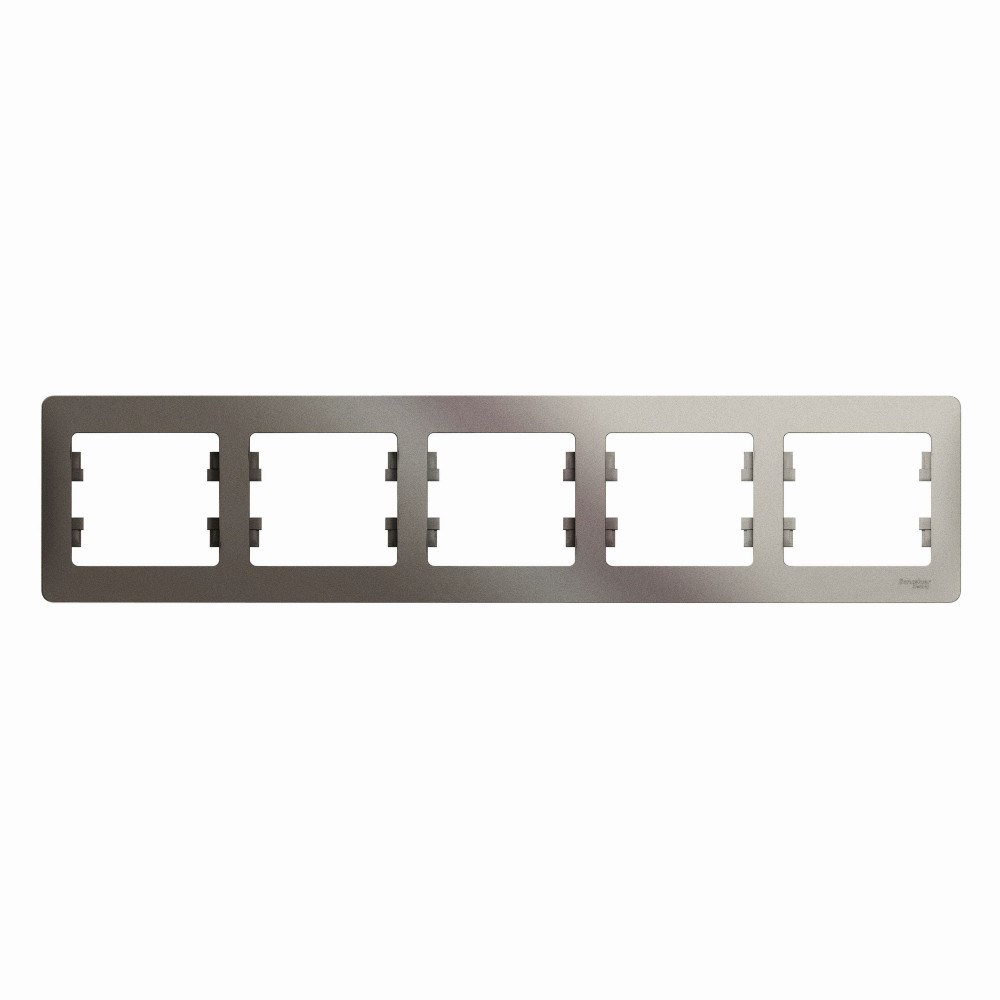 Рамка Systeme Electric (ранее Schneider Electric) серии Glossa (цвет платина) пятиместная. - Устанавливается в горизонтальном положении. - Выполнена из материала PС+ASA, стойкого к УФ-излучению и появлению царапин. - Позволяет гармонично вписать электроустановочное изделие в интерьер помещения.