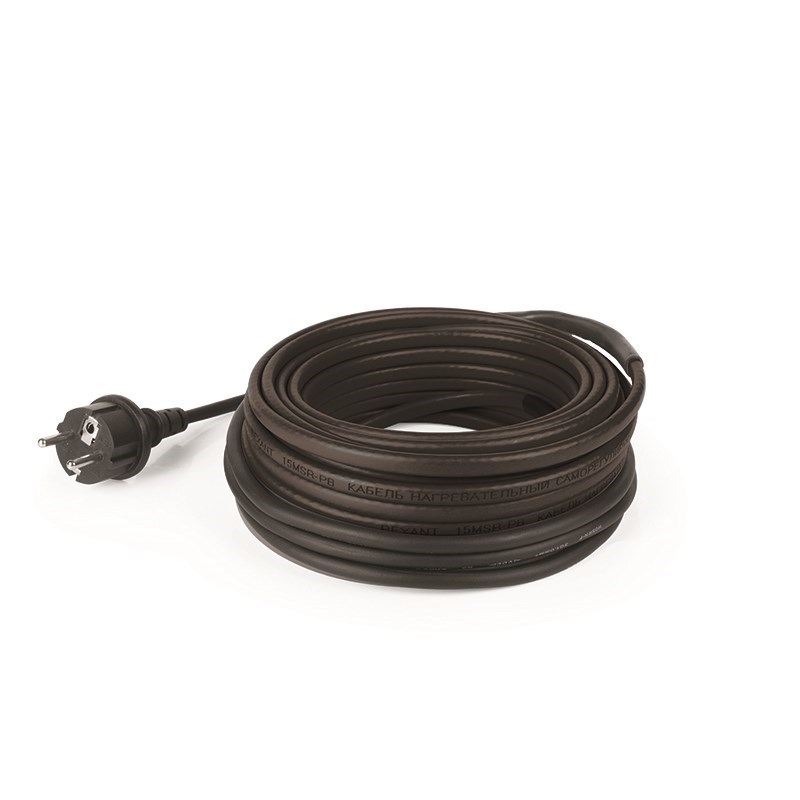 Нагревательный кабель соединен с питающим кабелем, на конце которого наxодится евровилка для подключения в розетку с заземлением. Благодаря защите IP67 и саморегулируемости комплект подxодит для использования как в помещенияx, так и на улице.