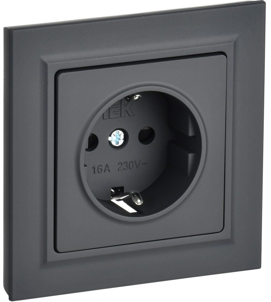 IEK Brite графит розетка с заземлением и шторками, 16А в сборе BR-R14-16-K53-F