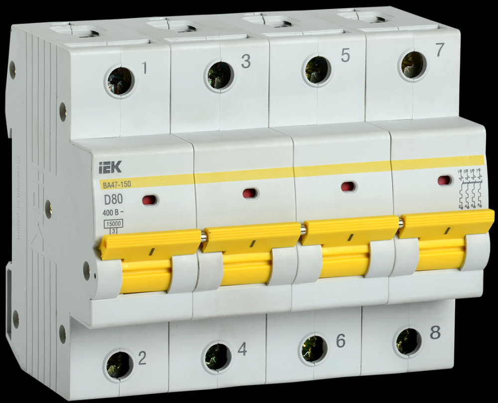 IEK KARAT Автоматический выключатель ВА47-150 4Р 80А 15кА характеристика D MVA50-4-080-D
