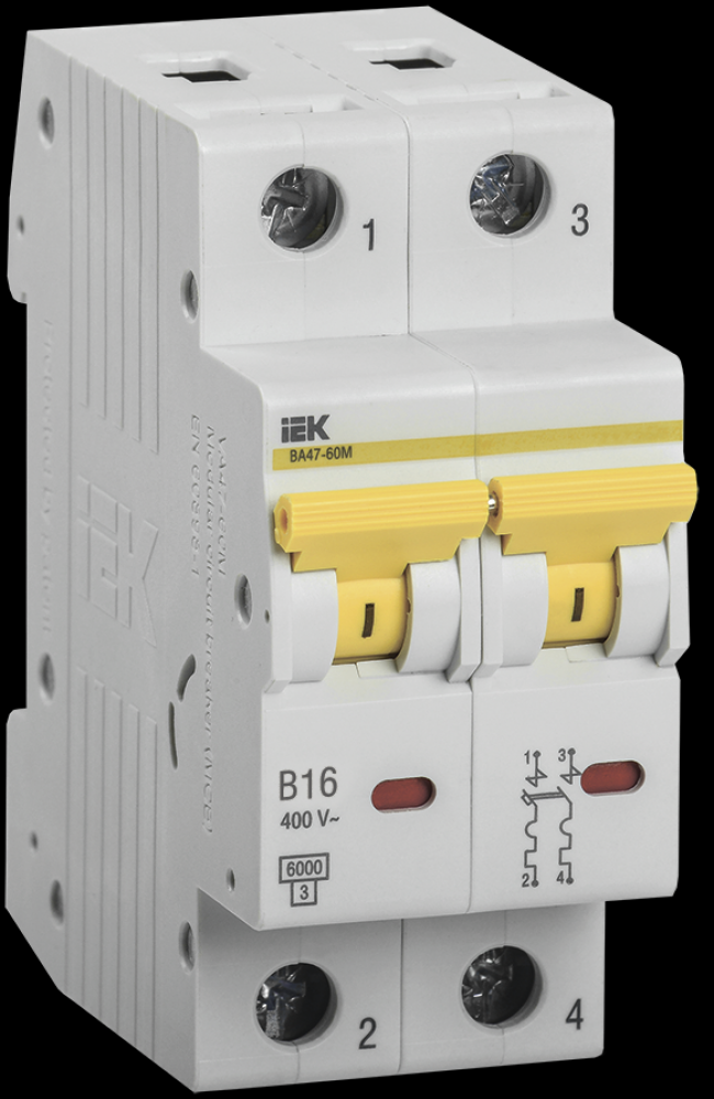 IEK KARAT Выключатель автоматический ВА47-60M 2Р 16А 6кА B MVA31-2-016-B
