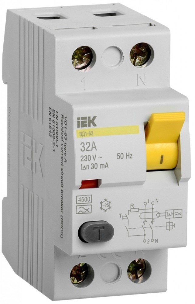 IEK KARAT Выключатель дифференциальный УЗО ВД1-63 2Р 32А 30мА тип А MDV11-2-032-030