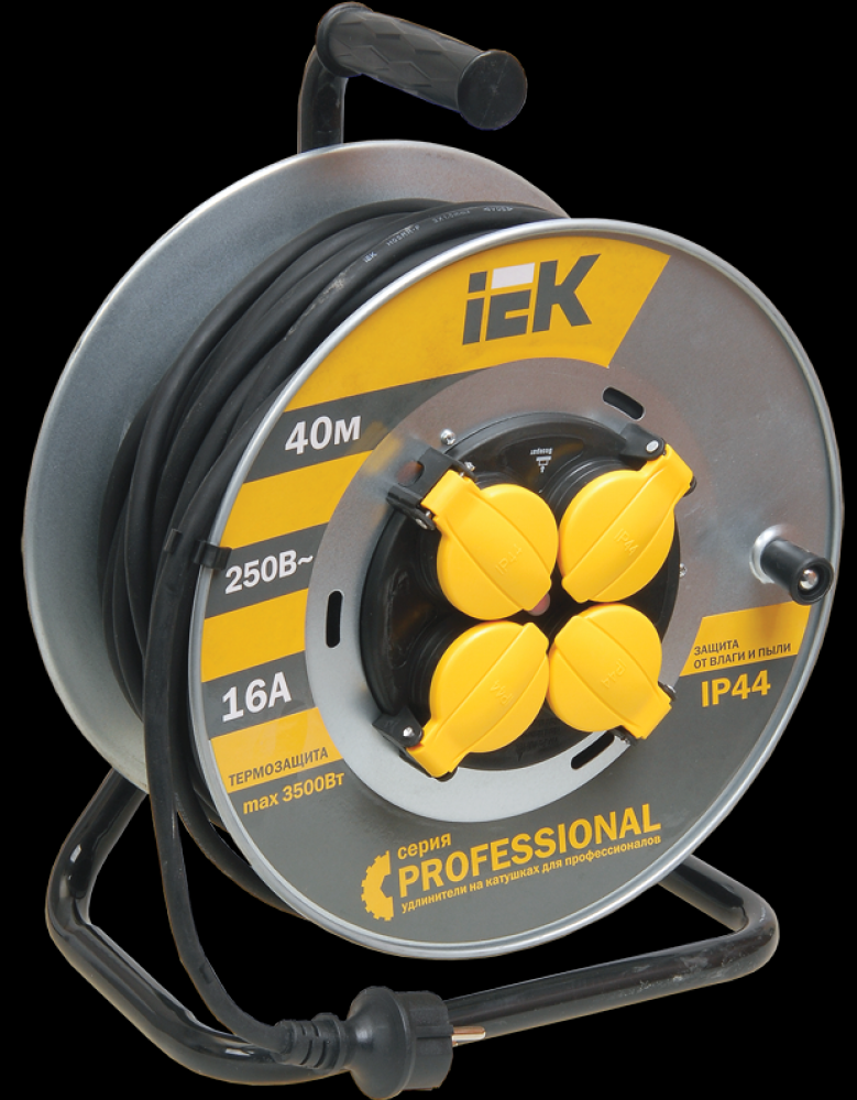 Удлинитель на катушке позволяет легко подключить удаленное от стационарной розетки электрооборудование. Незаменим на строительной площадке, на садовом участке, в парках с аттракционами, в промышленности и в быту.