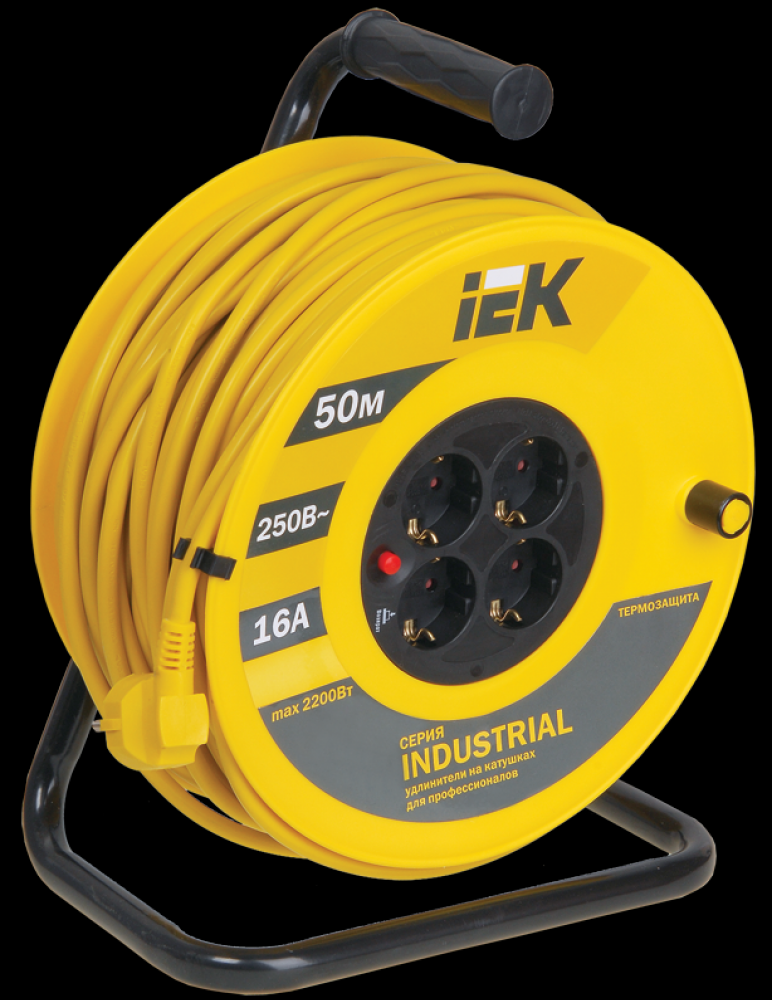 IEK Катушка УК50 с термозащитой 4 места 2Р+PЕ/50метров 3х1,5 мм2 Industrial WKP15-16-04-50