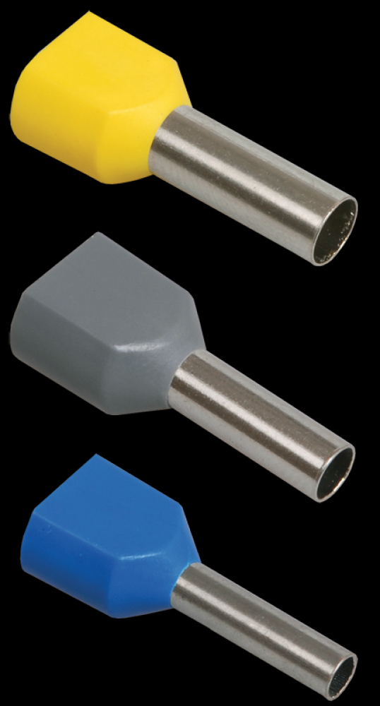 Наконечник штыревой втулочный предназаначен для оконцевания опрессовкой проводов с медными жилами в электрических цепях переменного и постоянного тока. Рассчитан для монтажа и подключения двух проводников.