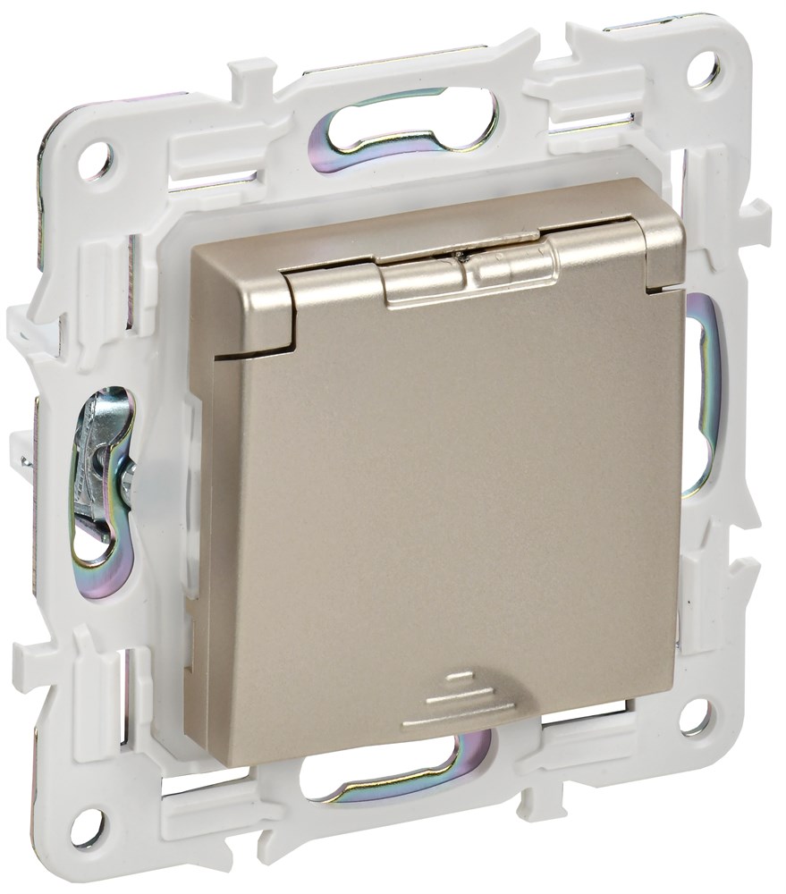 IEK SKANDY Шампань Розетка с/з с защитными шторками и крышкой 16А IP44 SK-R11Sh SK-R16-16-44-K37
