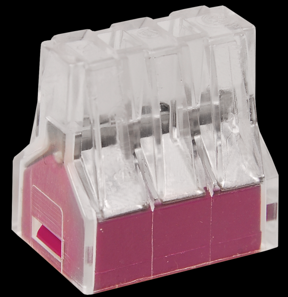 Строительно-монтажная клемма серии 773 в прозрачном корпусе, без контактной пасты, предназначена для однократного подключения одножильных/ многожильных медных проводников.