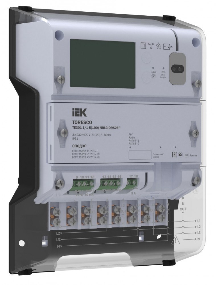 Многофункциональный трехфазный счетчик электрической энергии TORESCO предназначен для измерения активной и реактивной электрической энергии, и мощности в двух направлениях в каждой фазе трехфазных четырехпроводных цепях переменного тока номинальным напряжением 230В/400В и номинальной частотой сети 50 Гц, непосредственного подключения и организации многотарифного учёта электроэнергии. Счётчик TORESCO используются для измерения, хранения и передачи информации по встроенным интерфейсам связи 2хRS-485, PLC, радиоинтерфейс RF433 на частоте 433МГц и в сети GSM/GPRS 900/1800 МГц как самостоятельно, так и в составе АСКУЭ.