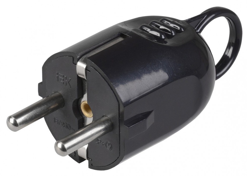 IEK ВПу12-02-Ст Вилка разборная угловая с з/к с кольцом 16А черная EVP12-16-01-K02