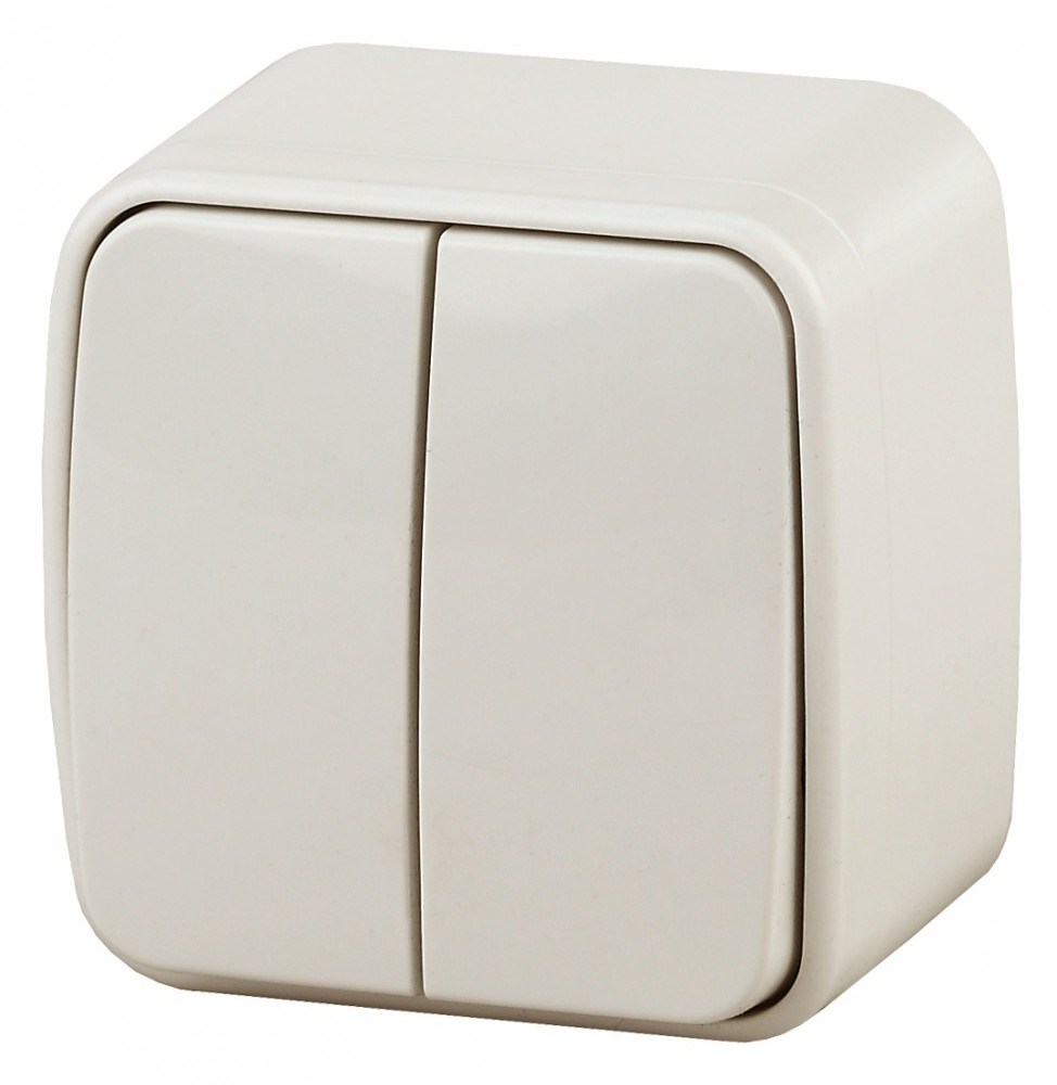 Выключатель2-клавишный серии Intro Polo открытой установки цвет сл.кость 3-104-02. Номинальные характеристики 10А 250В . Выключатель выполнен из качественного термопласта, стали и латуни, оснащён винтовыми зажимами.