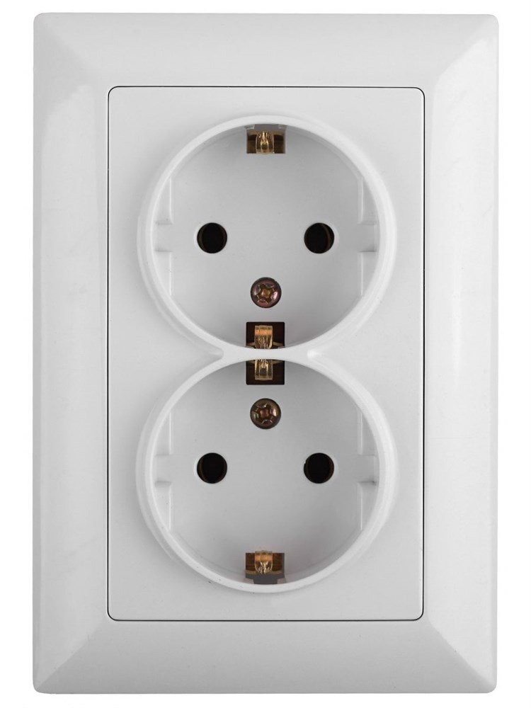 Розетка с заземлением, со шторками, двойная серии Intro Solo скрытой установки 4-208-01 цвет белый. Номинальные характеристики 16А 250В. Розетка выполнена из термопластика; укомплектована одноместной рамкой; оснащена винтовыми клеммами. Клеммы с двумя отверстиями позволяют соединять соседние розетки шлейфом. Установка в подрозетник производится как на монтажные лапки; так и на винты. Для установки 2-х и более устройств в несколько подрозетников в ряд дополнительно используются многоместные рамки.