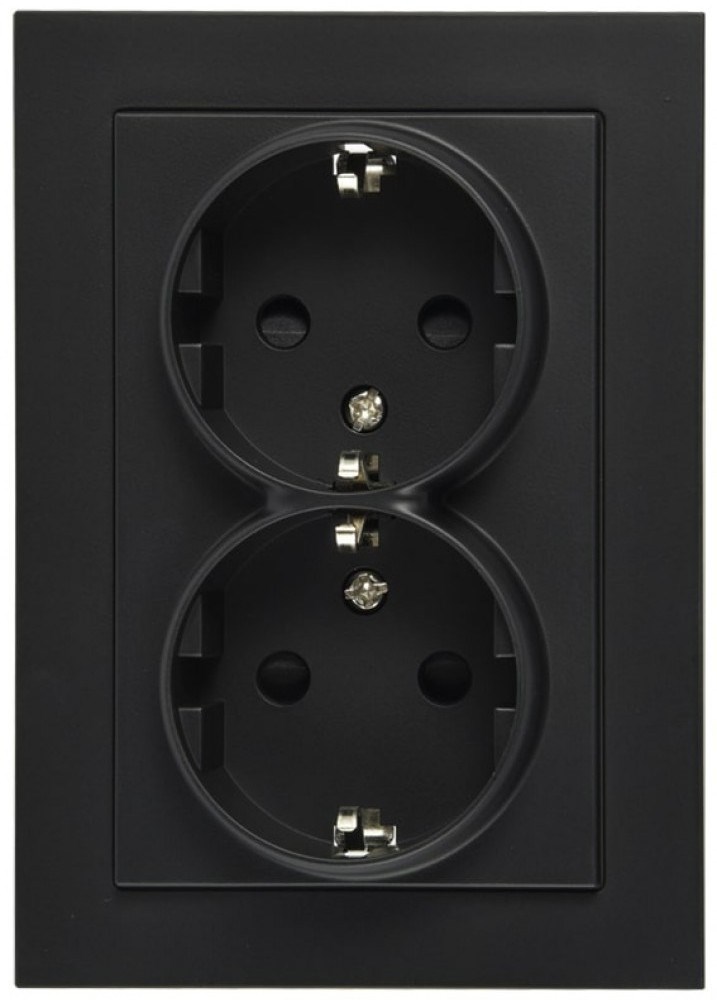 Jasmart G Черный матовый Розетка с/з двойная со шторками 16A 250V~ G5504PB