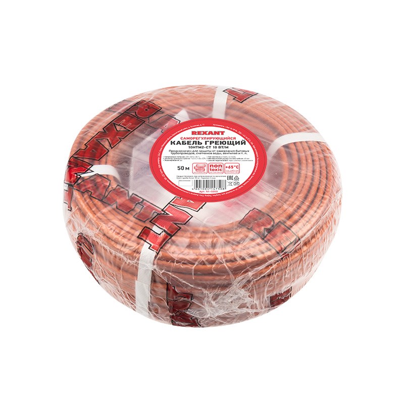 Кабель греющий саморегулирующийся пищевой 10HTM2-CT (10 Вт/1 м), 50 м Rexant 51-0200