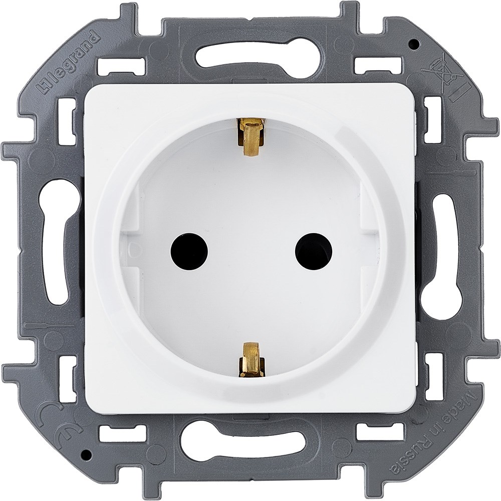 Розетка с заземлением Legrand Inspiria для скрытого монтажа , цвет Белый. Максимальный ток 16 А, напряжение 250В, максимальная мощность 3680 Вт. Применяется для электропитания в зданиях с проводкой с заземлением (с защитным проводником). Особенности изделия: - Контактная группа изготовлена из высококачественной латуни CuZn37, имеет высокую степень упругости и сохраняет плотный контакт с вилкой, при длительной эксплуатации. - Зажимы для присоединения проводников винтовые П-образной формы для исключения бокового выдавливания провода. - В зажимах установлены качественные винты с никель-цинковым напылением для надежного резьбового соединения даже при чрезмерных моментах затяжки. - Защитный контакт с широким основанием и специальным профилем для упгугости при подключении/отключении и плотного контакта с вилкой. - Лицевая панель крепится на защелках. Изготовлена из прочного глянцевого поликарбоната, стойкого к механическим воздействиям, выгоранию и загрязнениям.
