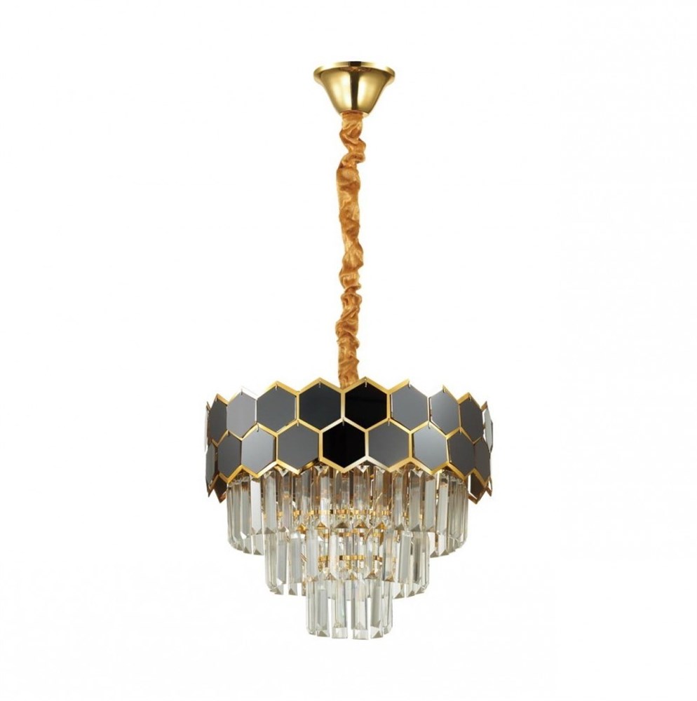 Центральным элементом люстры KAZ является металлический каркас из шестиугольников черного цвета в золотом обрамлении. Дополняет дизайн трехуровневый каскад из стекла. Материал изделия: металл, стекло, степень защиты: IP20, класс защиты: I, гарантия (месяцы): 30, дополнительные параметры: -, способ крепления: крепление на крюк