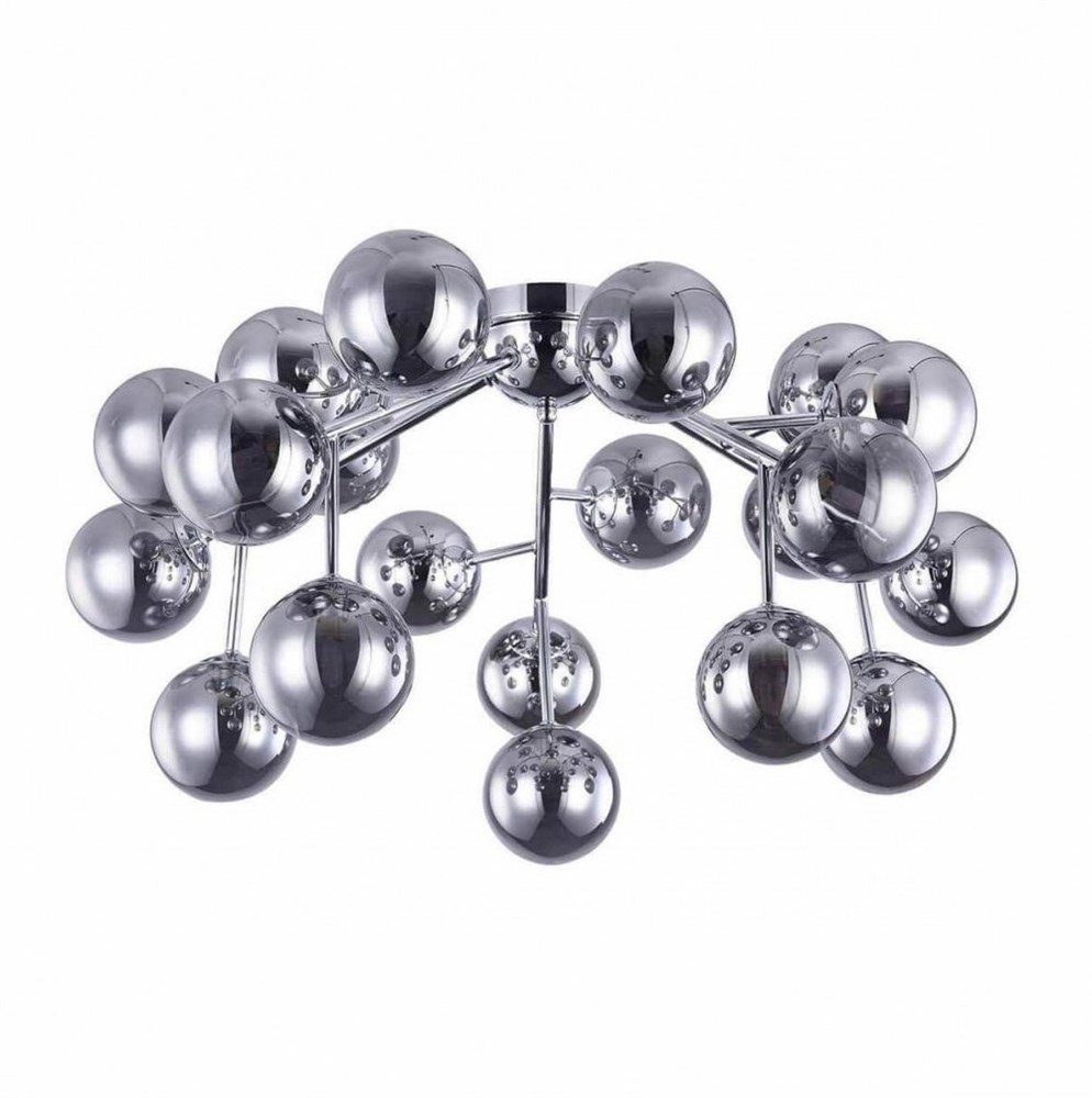 Масштабные скульптурные композиции, образованные многочисленными шарами из выдувного стекла, формируют неповторимый облик светильников серии. На полированных металлических ветвях установлены тонированные плафоны, которые мягко рассеивают и приглушают свет ламп. Модели серии представлены в трех цветах: золото, хром и латунь. Высота подвесных светильников регулируется длиной троса. Серия представлена потолочными, подвесными светильниками, и бра. Потолочный светильник MOD545PL-20CH; Цвет-Хром; Высота-225; Высота при подвесном креплении--; Диаметр-750; Ширина--; Глубина--; Цоколь-G9; Мощность-28W