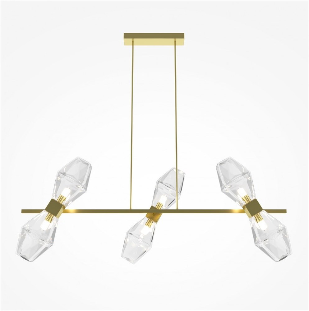 Металлическая арматура. Оттенки – золото, жемчужное золото. Плафоны – прозрачное литое стекло. Эффектный дизайн с крупными гранями. Регулируемая высота. Источник света – лампа с цоколем G9.