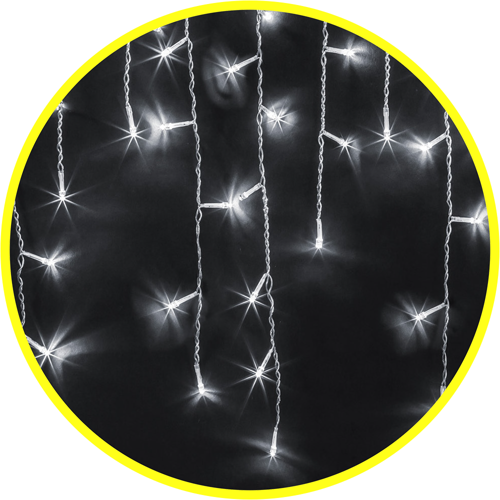 тип гирлянды - бахрома ; цвет свечения - белый; режим постоянного свечения; размер - 2х0,5 м; длина провода до первого светодиода - 1,5 м; количество светодиодов - 100 шт; расстояние между светодиодами - 8 см; соединение в линию до 5 гирлянд; расстояние между нитями - 10 см; тип провода - прозрачный морозостойкий ПВХ; степень защиты - IP44; температура эксплуатации от -40 до +40°С; срок службы - 50000 часов; гарантия - 12 месяцев.