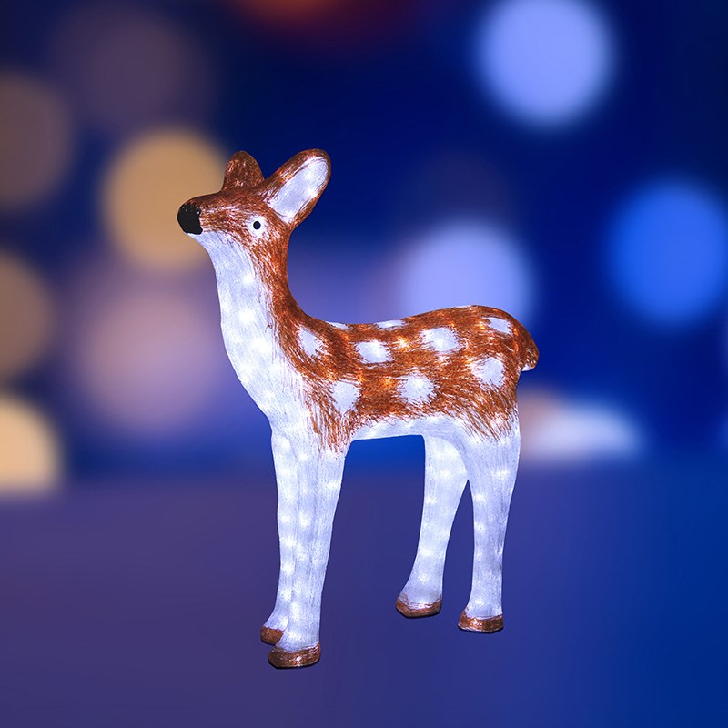 Акриловая светодиодная фигура "Олененок коричневый" высотой 81 см, светящаяся более чем 150 яркими диодами, выполнена по специальной теxнологии нанесения акрила имитируя шерстяной покров реального животного. Новинка этого сезона позволит Вам создать ту самую, настоящую новогоднюю атмосферу и принести сотни радостныx улыбок.