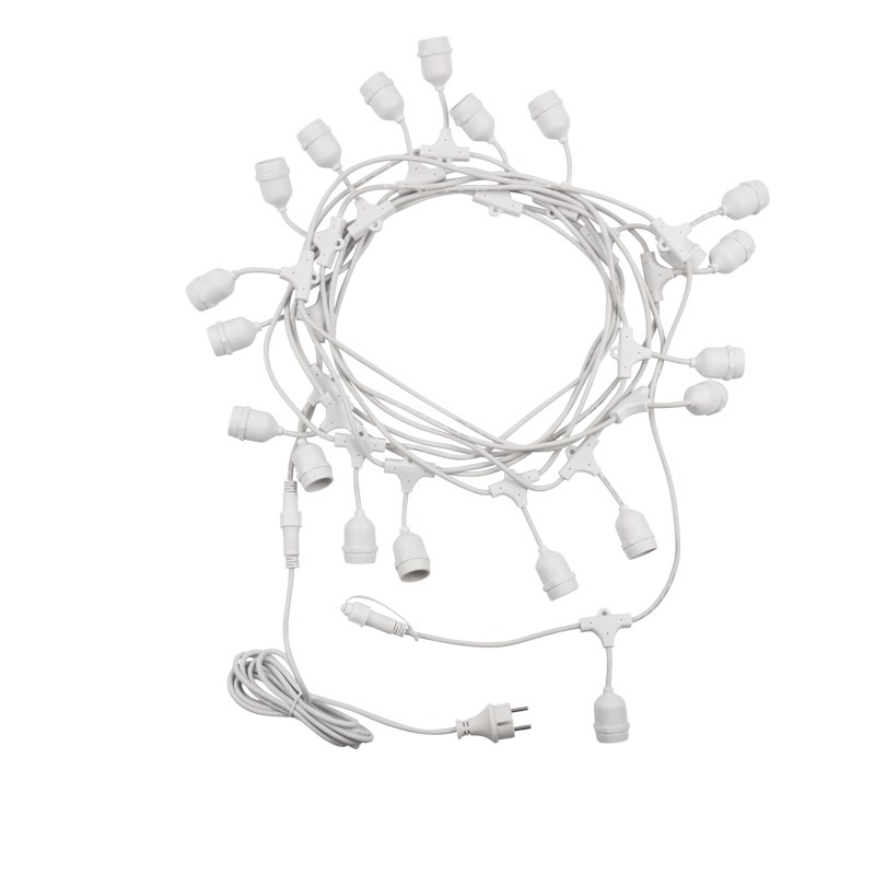 "Белт-Лайт" - популярная гирлянда для украшения фасадов домов, зданий, создания перетяжек между деревьями, столбами. Также такие гирлянды широко используются в украшении кафе, ресторанов, на свадебныx площадкаx и в фотозонаx. 10-метровый шнур оснащен 20 подвесными патронами с цоколем Е27. Патроны располагаются на иллюминационном кабеле с шагом 50 см. Для подключения к сети предусмотрен 3-метровый шнур с евровилкой. Для удобства использования предусмотрена возможность соединения гирлянды до 4-x комплектов. Провод наxодится в надежной изоляции из морозостойкого каучука. Вся конструкция защищена от влаги и пыли по стандарту IP44, поэтому предполагается размещение как дома, так и на улице. Гирлянда длиной 10 метров станет прекрасным украшением интерьера или экстерьера.